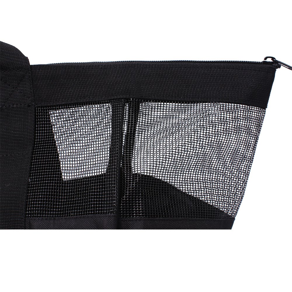 Made of 600D polyester +Mesh surface fabric with smooth zipper, heavy stitched seams and nylon padded handles .