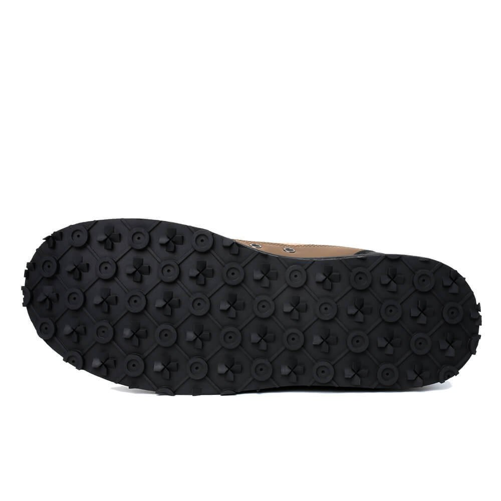 Cleated rubber outsole with recessed stud insert point for maximum traction in moving water, on slick rocks, and muddy river banks
